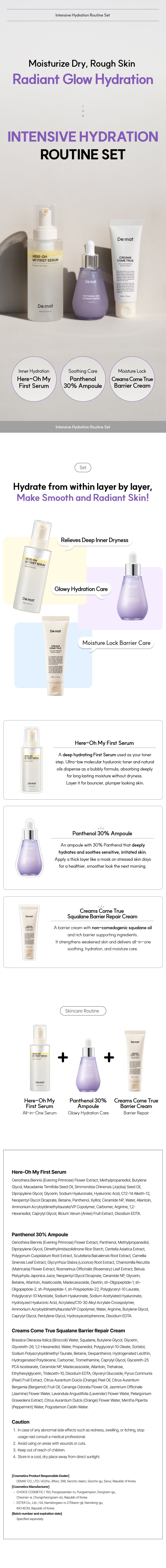 A 3-step barrier care routine that deeply hydrates, seals in moisture, and helps skin recover from dryness and daily stress. Panthenol, ceramide, and centella soothe irritation and redness fast, while low molecular hyaluronic acid, squalane, and nourishing plant oils keep skin comfortably hydrated all day. Lightweight textures absorb quickly for a soft, dewy De:maf glow without stickiness.